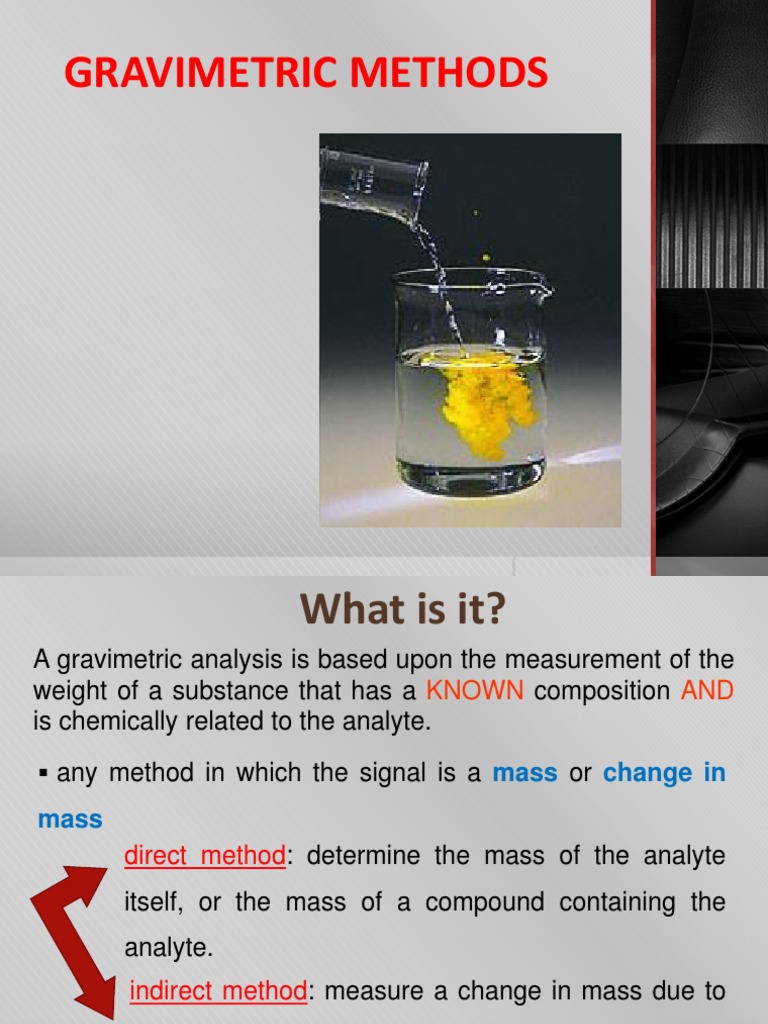 Web gravimetric analysis is a quantitative method used in analytical chemistry to determine the amount of a substance present in a sample by measuring its mass. Web gravimetric analysis is an analytical technique that determines the quantity of an unknown substance. Web an accurate gravimetric analysis requires that the analytical signal—whether it is a mass or a change in mass—be proportional to the. Web gravimetric analysis is a quantitative method for accurately determining the amount of a substance by selective precipitation of the. Web the principle of gravimetric analysis: Web gravimetric analysis is an analytical technique used for the quantitative determination of an analyte based on the mass of solid.the element to be. Web gravimetric analysis is a technique through which the amount of an analyte (the ion being analyzed) can be determined through the measurement of mass. The principle behind the gravimetric analysis is that the mass of an ion in a pure compound and.